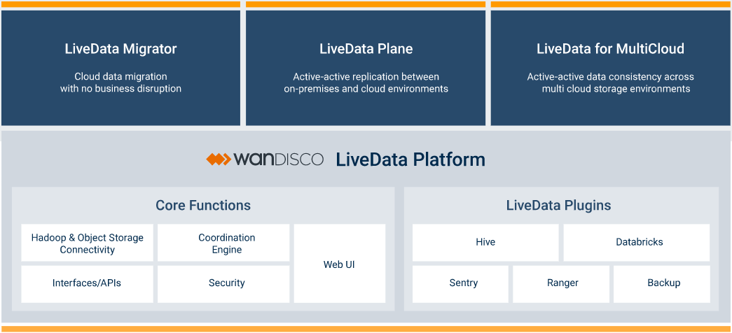 LiveData Cloud Services is WANdisco’s portfolio of products that enable petabyte-scale cloud data migration as well as active-active data replication to create a LiveData environment where data is always available, accurate, and consistent. With zero downtime and zero data loss, WANdisco LiveData Cloud Services keep geographically dispersed data at any scale consistent between on-premises and cloud environments allowing businesses to operate seamlessly in a hybrid or multi-cloud environment.